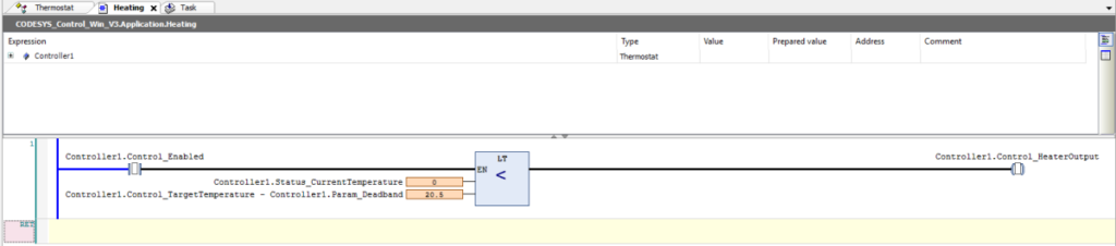Note that the Controller1.Control_HeaterOutput coil is now active.