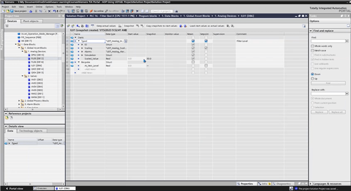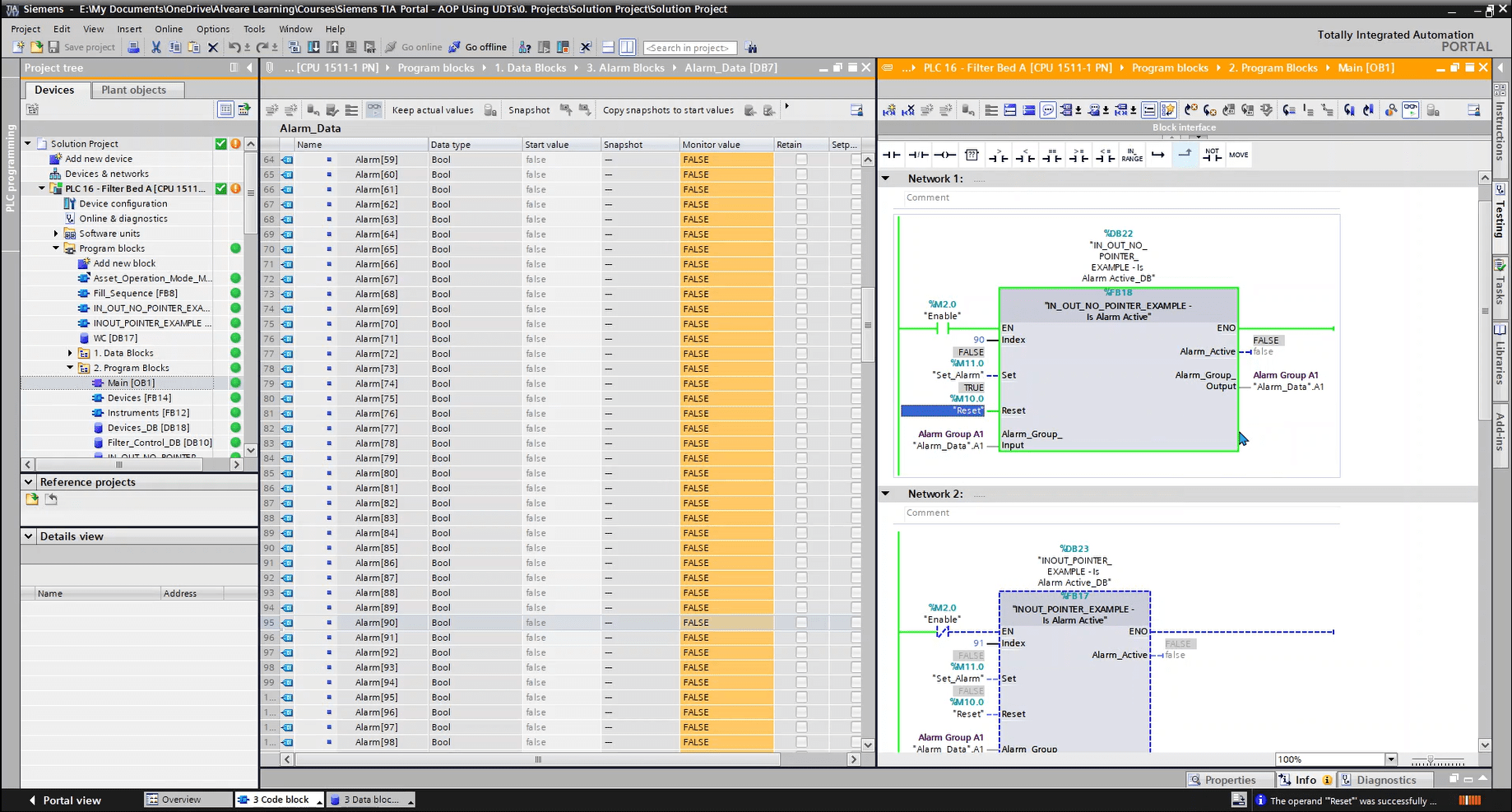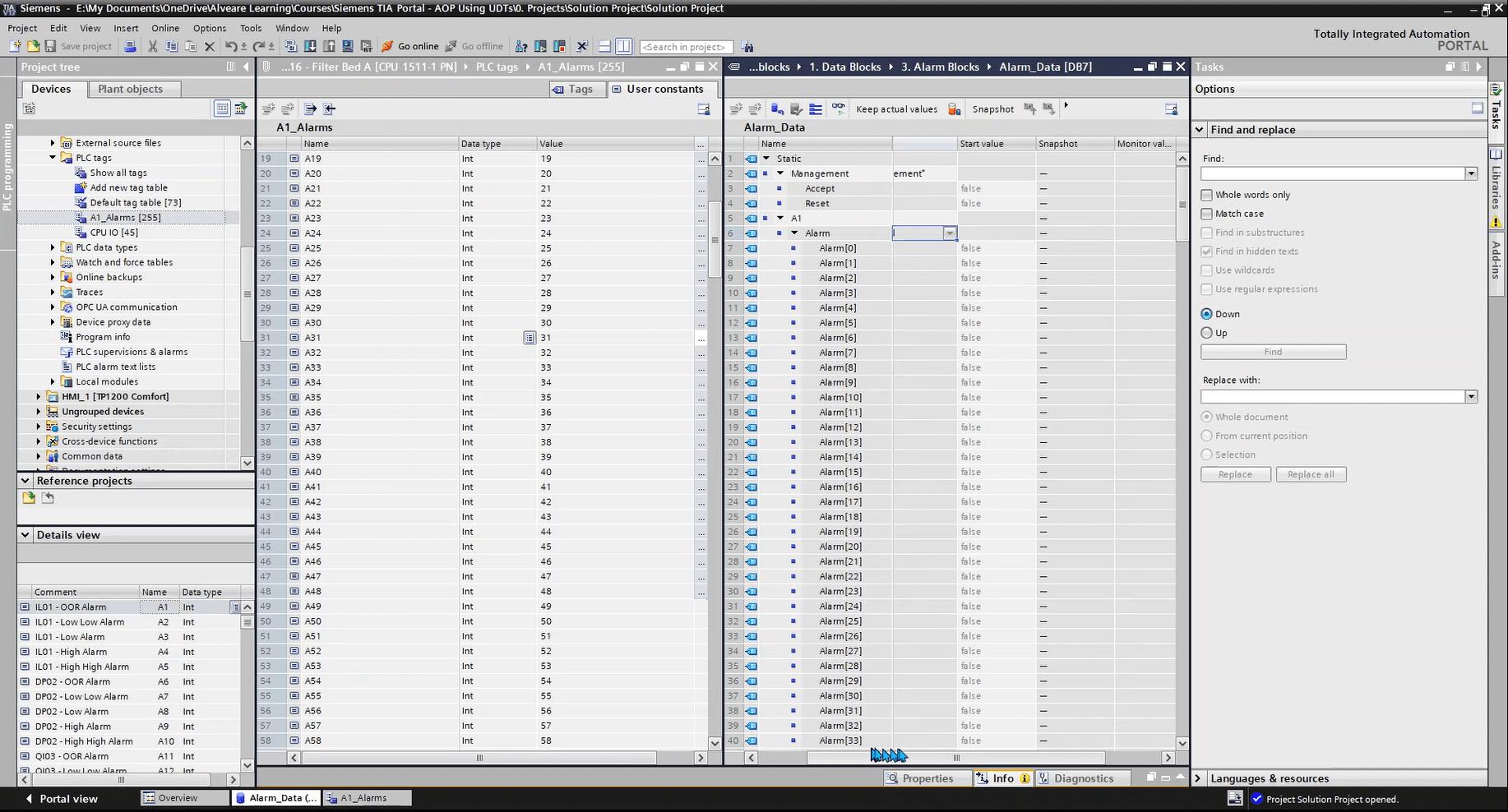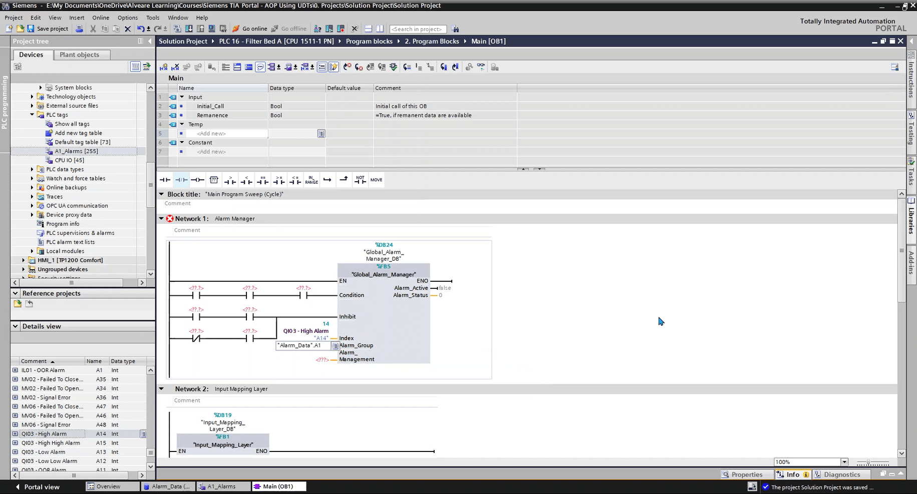 This lesson looks at the Alarm Data structure, and how we’re using two UDTs to make up that data. We’ll also look at comments and why they need to appear in two places in this case