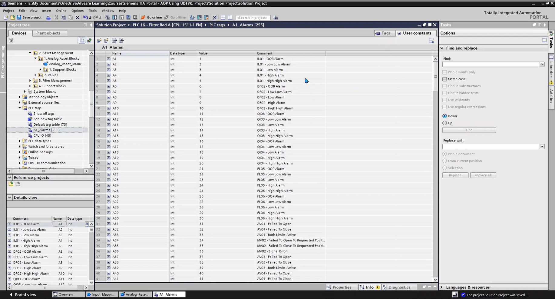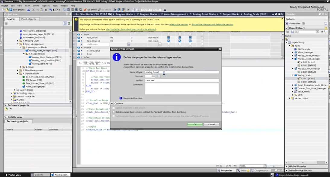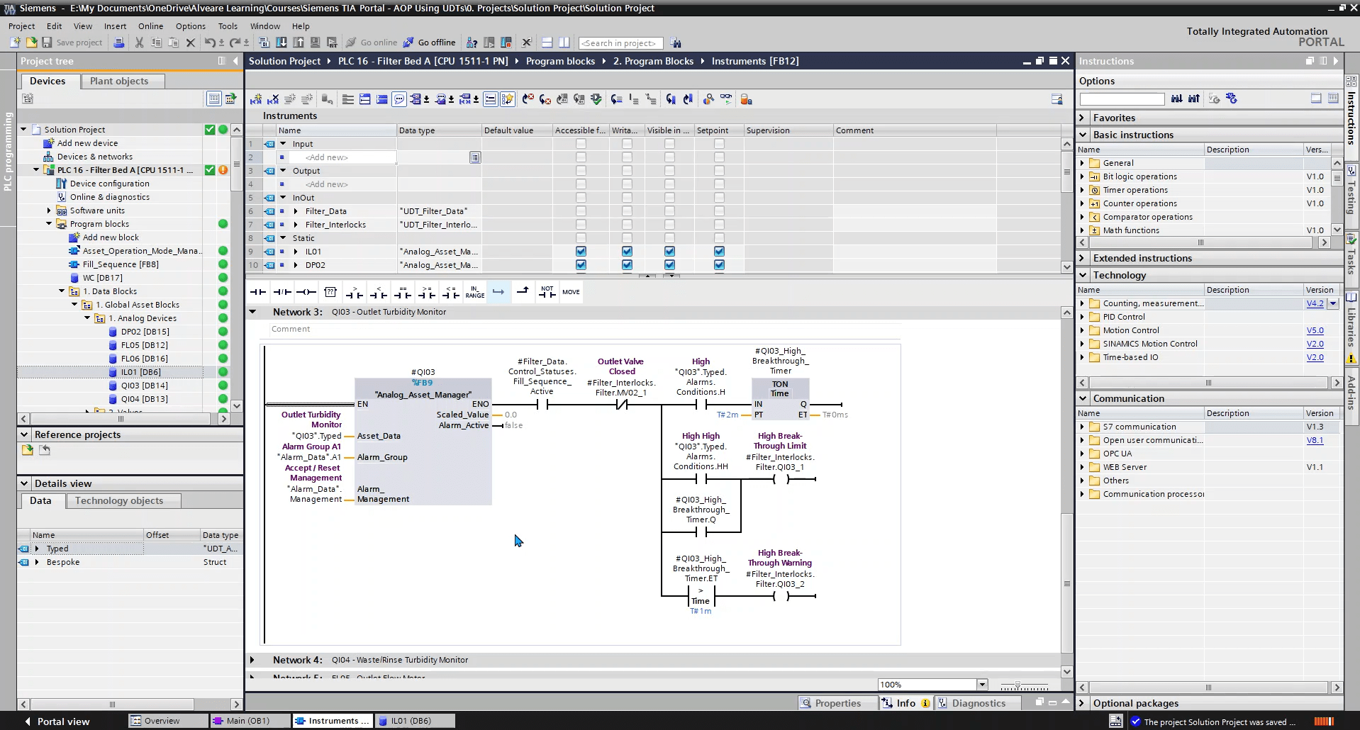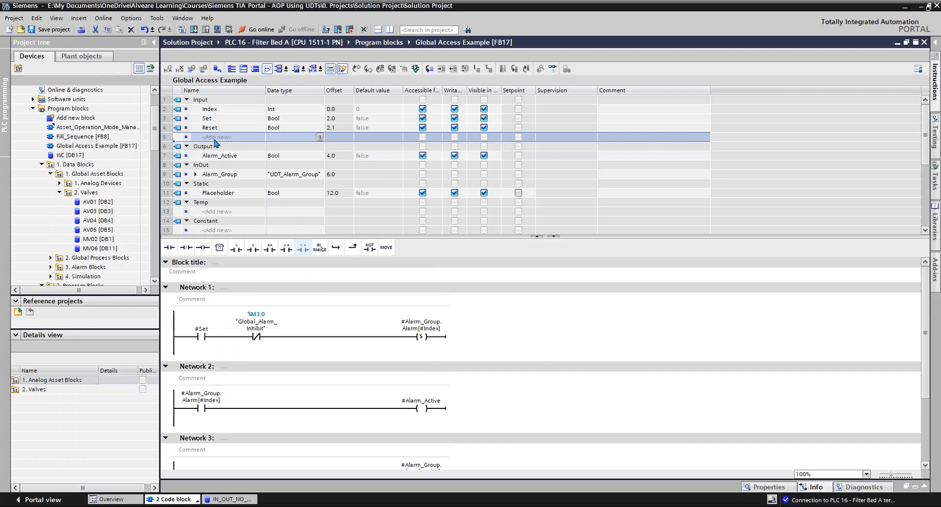 This lesson looks at the Alarm Data structure, and how we’re using two UDTs to make up that data. We’ll also look at comments and why they need to appear in two places in this case