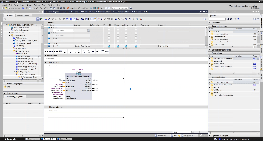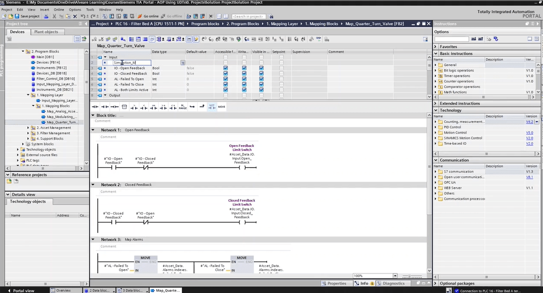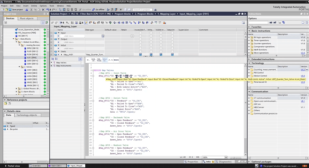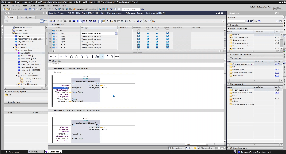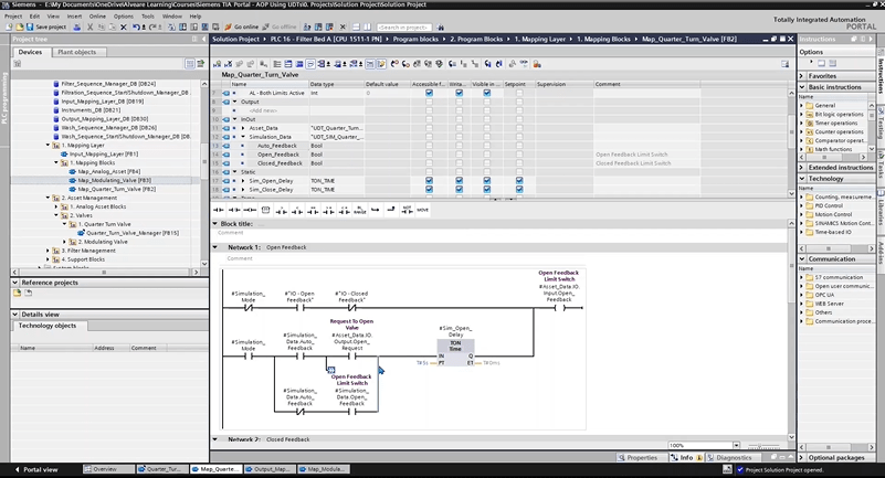 Asset-Oriented Programming (AOP) changes that. Instead of writing isolated bits of logic, you structure your PLC projects around “assets” like pumps, valves, filters, drives, each built with reusable blocks, faceplates, alarms, and interlocks.
