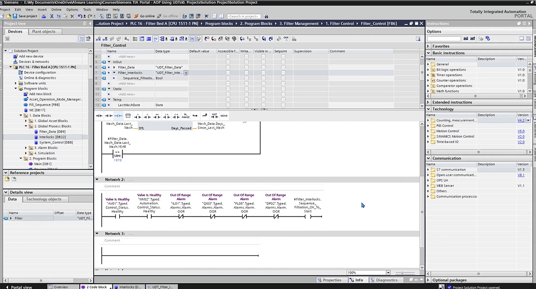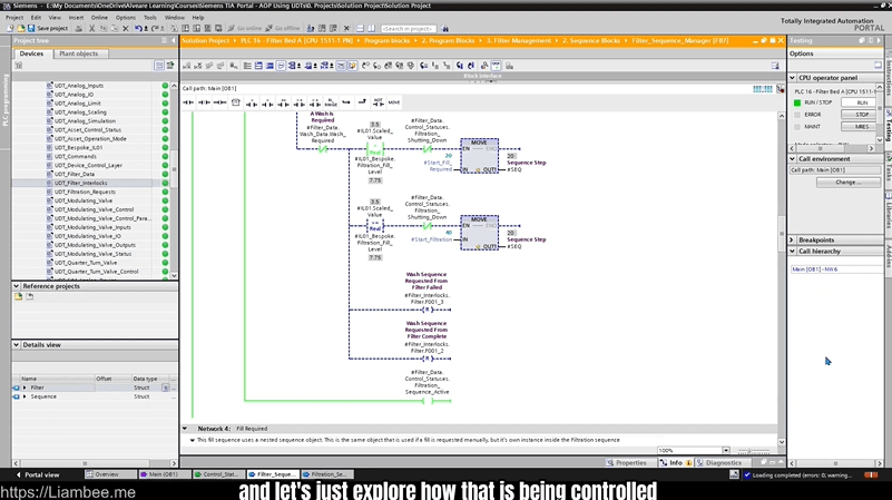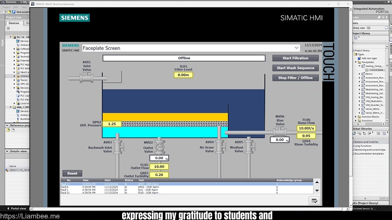 - Tie it all together with a complete real-world project: a sand filter with sequences, backwash cycles, alarms, and operator screens.