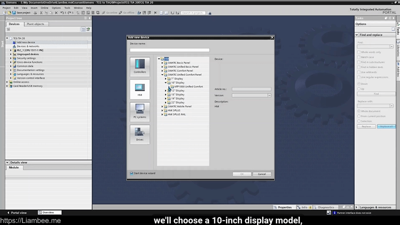 In addition to a CPU, we’ll also add a HMI to TIA Portal
