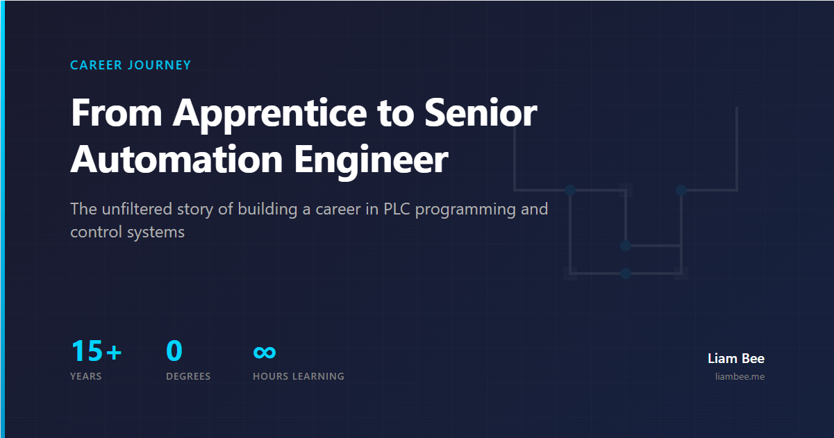 Quick Read: I became an automation engineer through a 4-year electrical engineering apprenticeship starting at age 16, combined with self-directed learning, hands-on PLC programming practice, and 15+ years of continuous skill development. No university degree… just persistence and curiosity….
