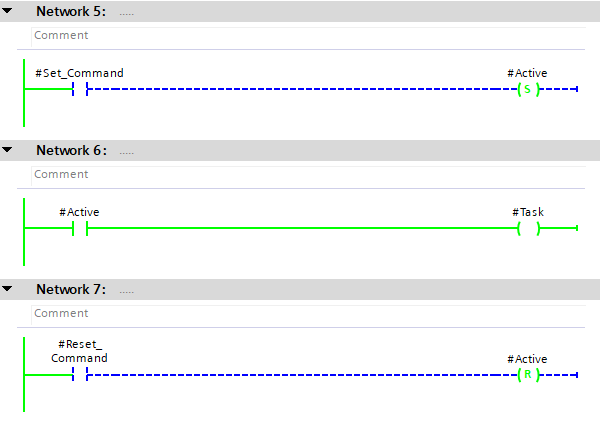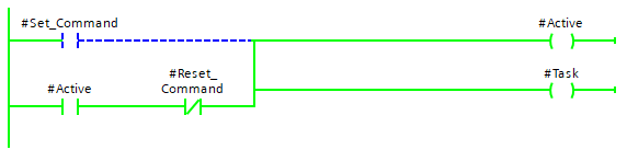 The above approach is much easier to visually see why the Task variable is still active. This becomes especially useful in fault finding where Latch systems can become very confusing with many Set Coils.