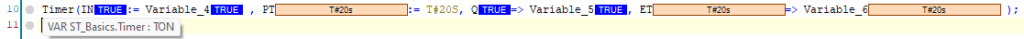 The above is an example of calling a TON Timer, however, you don’t know its a TON unless you either recognise the interface, or view the declaration pane to see what data type #Timer is. Even the tooltip doesn’t tell you what the actual instruction is: