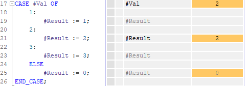 Above, because #Val is set to 2, the #Result is set to 2 also in accordance to the code on line 21