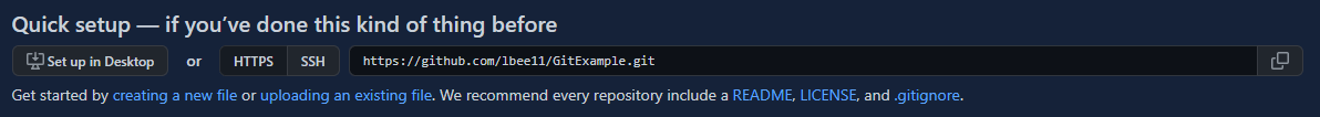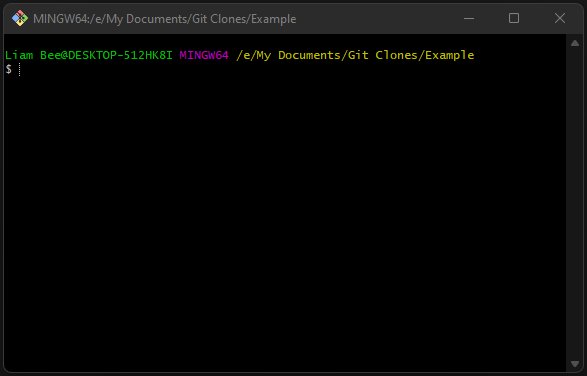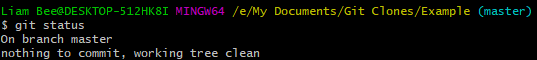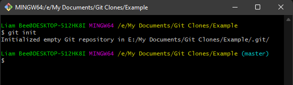 This has now created a local repository in the folder Example 2, that is tied to the remote repository from GitHub. You can new use this in the same way the local ones are used.