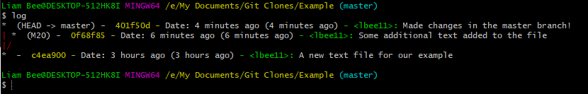 Head -> mastertells us that we made the commit from the head of the repository (the latest position) and committed to themasterbranch (we’ll cover branches later) - Author – Who did the commit