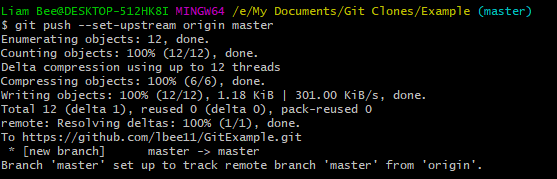 git push for the first timeWhen using git push for the first time, you’ll be told that you need to set the upstream branch. By using git push --set-upstream origin master you get the following output: