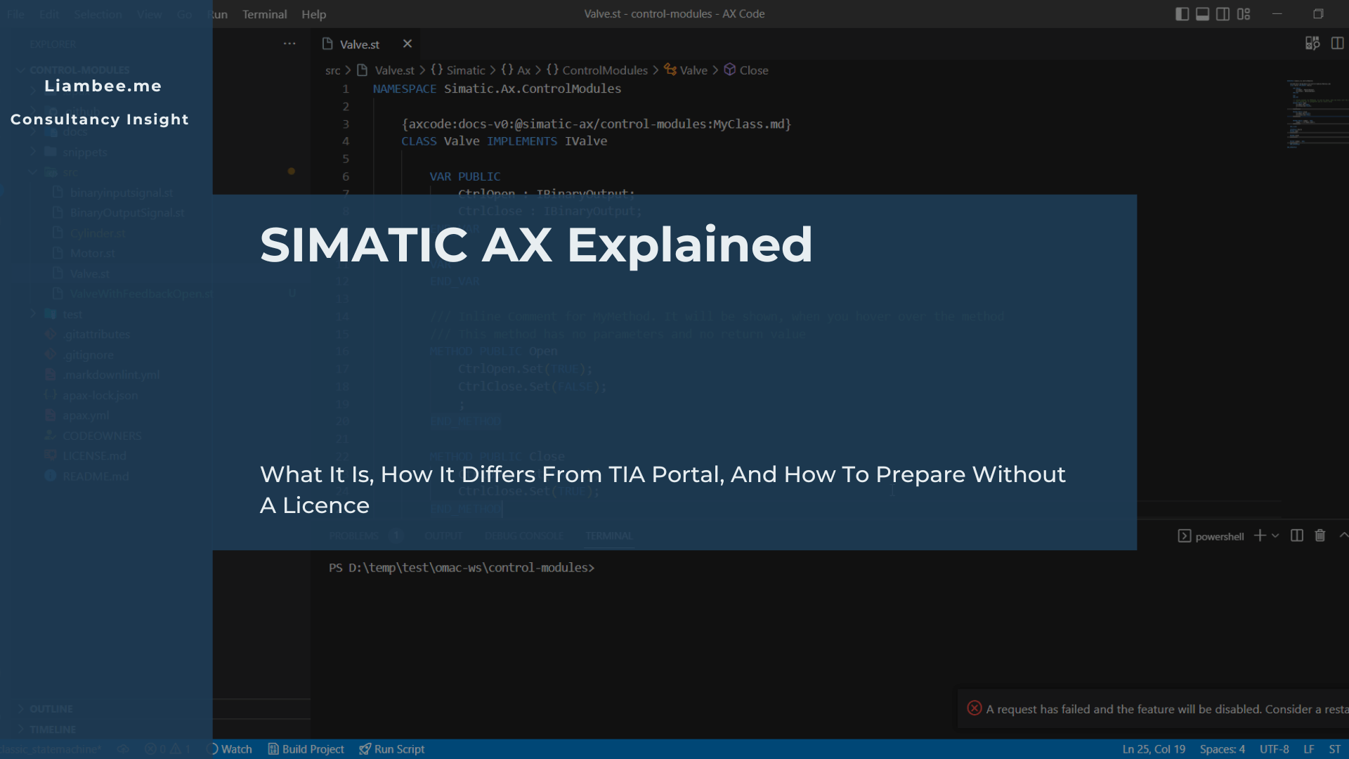 In practical terms, SIMATIC AX gives you a text-based development environment for building PLC software using Structured Text, object oriented constructs, packages, tests, and command line workflows. Around that core you also get AX Code, the AX command line tooling, package handling, Git-friendly project files, community resources, and an increasingly public ecosystem of examples and templates.