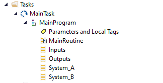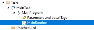 Any well laid out project will consist of more than just the Main Routine. When a project is first created in Studio 5000, a pre-created Task called MainTask will be created, inside this will be a Program called MainProgram, and inside this will be a Routine called MainRoutine