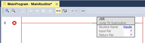 By placing a JSR instruction, you can then choose a Routine to call. In this case, we’ll select the Inputs routine: