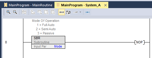 The JSR that called System_A also passes an Input Parameter. This is required because the System_A Routine requires that the Mode is set on entry into the Routine: