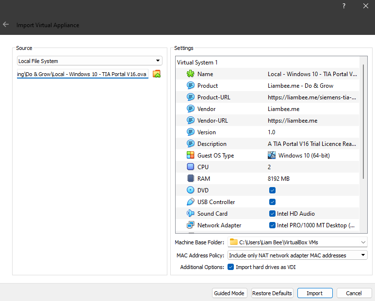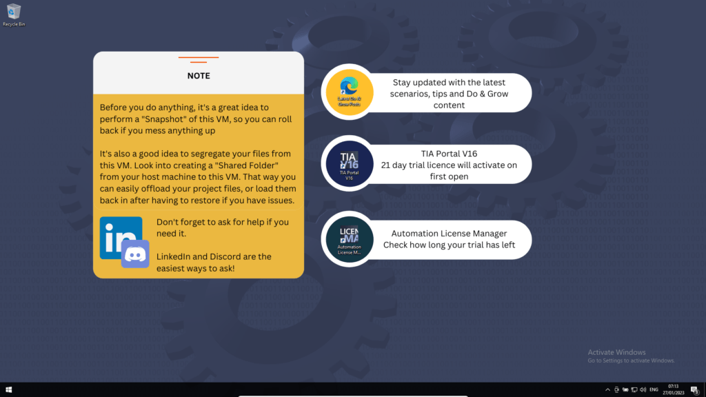 You can download a virtual machine that has a Trial Version of TIA Portal V16 installed, but you’ll need to be a Do & Grow member in order to actually download the Export file.