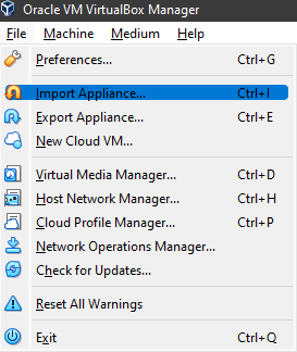 Click the Import Appliance button from the File menu. A new window will open