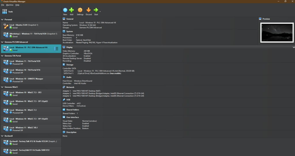 Once this is complete, you’ll have a second VM ready to install WinCC for your SCADA purposes. The login information will be the same as the Base and PLCSIM VMs.