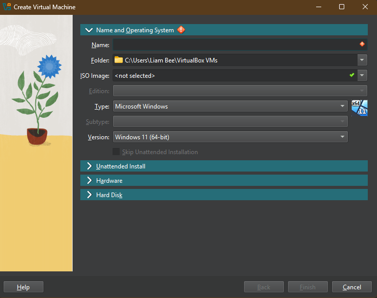 Once the above is done, give the VM a Name, for example: Blank Windows 11