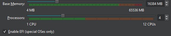 In the Hardware section, give the VM some resources from your Host machine (it might look a little different to the above)