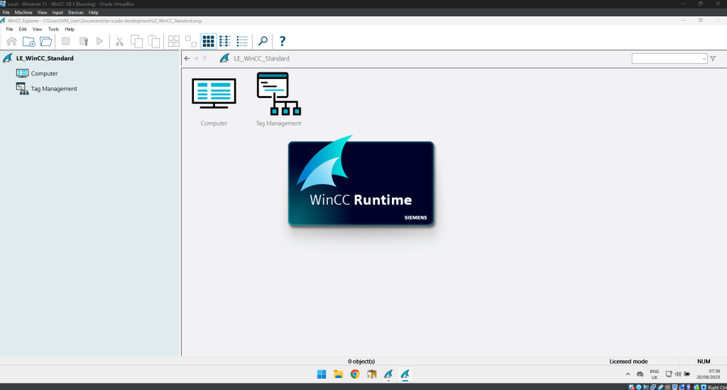 Once the Export Zip is available in the VM, open WinCC Explorer and the Tag Manager