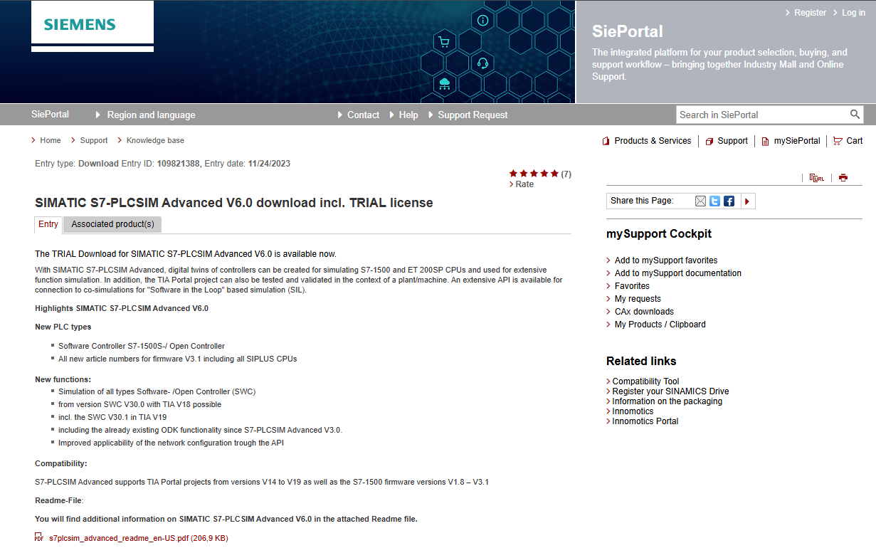 Fire up the PLCSIM Advanced VM that you cloned earlier and head to Siemens Website to download a trial version of the PLCSIM Advanced software.