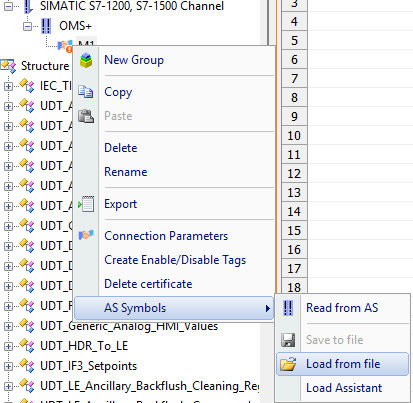 Choose AS Symbols –> Load From File. Locate the Zip file (you may have to change the file type if it’s the first time you’ve ever done it) and load it into WinCC. This could take some time.