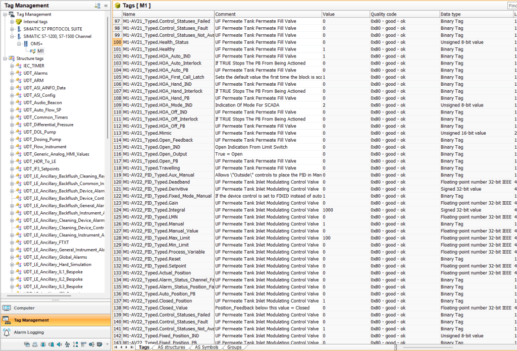 - AS-Read for Tag generation is available, directly from the PLC or through the SIMATIC Export Tool and all tags can be checked that they work correctly against the Virtual PLC, before attending site.