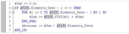The end result of these 3 components is an average function that is capable of averaging used elements in the FIFO. When the FIFO becomes full, the oldest value in index location 99 falls off the end and is lost.