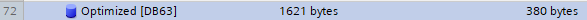 Much smaller, because there’s no reserved memory. It’s also 6 bytes smaller due to no header requirements by the Optimization system.