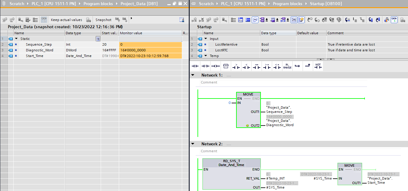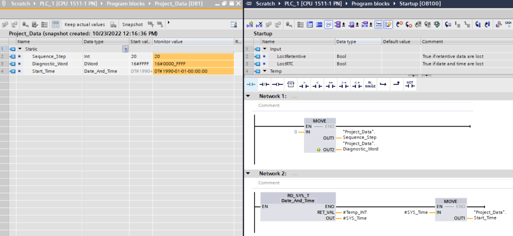 OB100 updates Project_DataThe Project_Data is now updated with information due to the execution of the Startup OB.