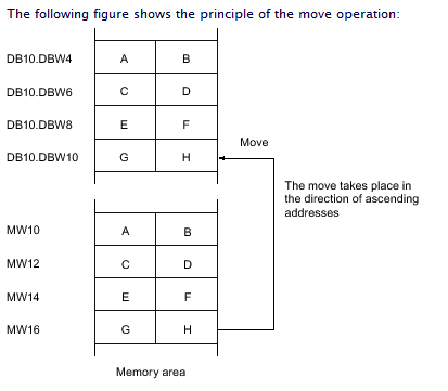 BLKMOV is similar to the MOVE instruction, except the data type of the input does not need to match the data type of the output. The length of the data doesn’t need to be same either, although truncation will occur if they are not the same and the output area is smaller.