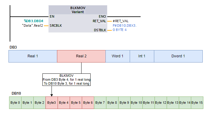 The above shows us moving a Real value into 4 bytes. As long as the data length matches, this will not cause any issues