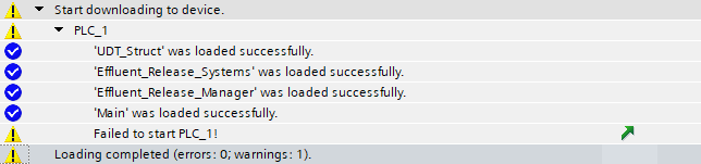Once this has been fixed, the PLC starts up correctly: