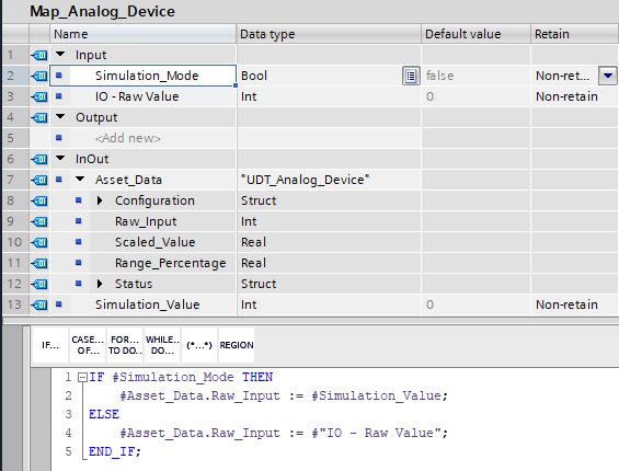 For example, consider having a Function Block that has an INOUT interface that utilizes a structure. Inside the Function Block, you access the variables within the structure like so: