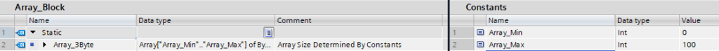 The above image shows Array_3Byte now being declared using Array_Min and Array_Max, which can be set to any value and will change the length of the array.
