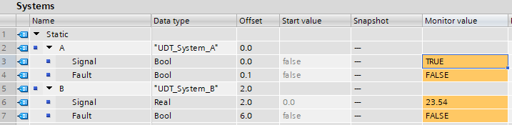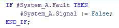 System_A DataSystem_A.Fault is checked and if True, .Signal is modified to False. This works fine, however remember that System_A is in temporary memory, and is disassociated from Data. This means System_A needs to be written back to Data: